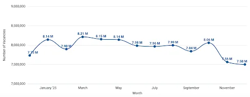Figure 1: Total U.S. job vacancies, January–December 2025